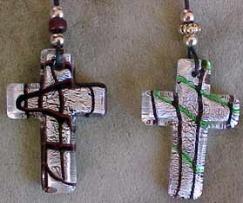 RIGHT: Silver, green and maroon cross