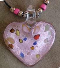 Approx 2" silver art glass pendant with gold and pink splash.